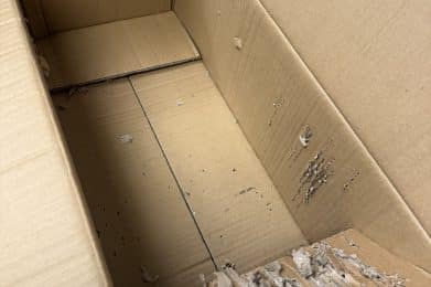 She was found abandoned in a box, frantically clawing to escape. Around her neck, a deep scar remains—a permanent reminder of the life she somehow survived.